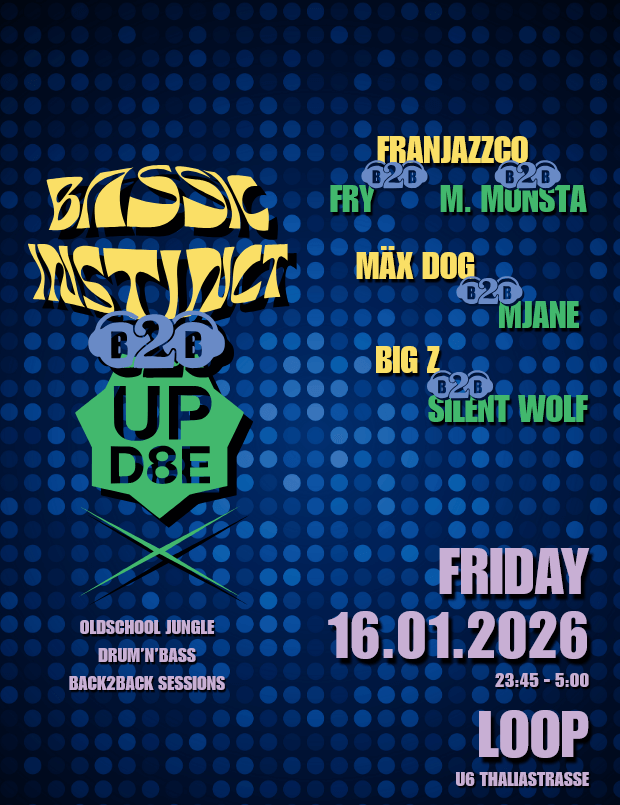 Bassic Instinct and Upd8e join forces for an event dedicated to collaboration! Two like-minded local crews with a shared passion for authentic oldschool Drum & Bass come together to present a series of back-to-back DJ mixes, each pairing artists from both collectives.