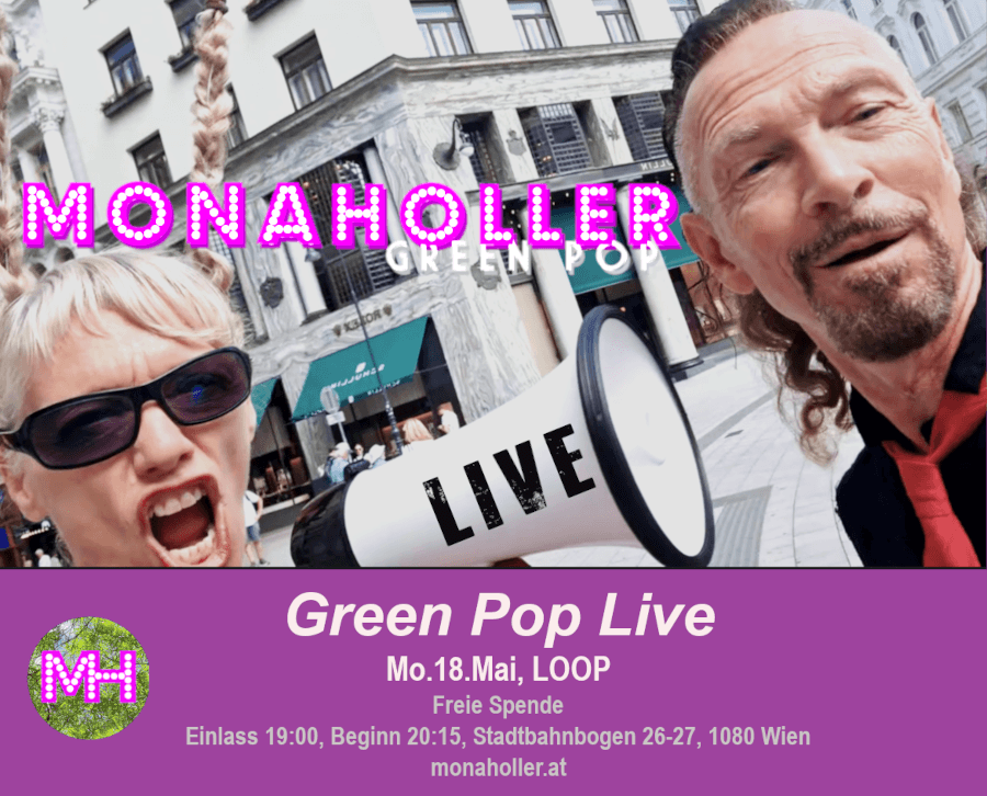 Das Duo MONAHOLLER sind Mona Hollerweger (lead-vocals, performance) und Gajus Stappen (e-guitar, vocals, laptop) macht Green Pop: energetische, tanzbare Songs mit Texten, die die dramatische Entwicklung von Mensch und Natur „populär“ thematisieren. Sie sind in oberösterreichisch, englisch und deutsch, sometimes all mixed up in one song… Das Projekt wurde im August 2023 mit Videos zu eigenen Songs gegründet, seit Jänner 2025 gibt es auch Live-Auftritte;