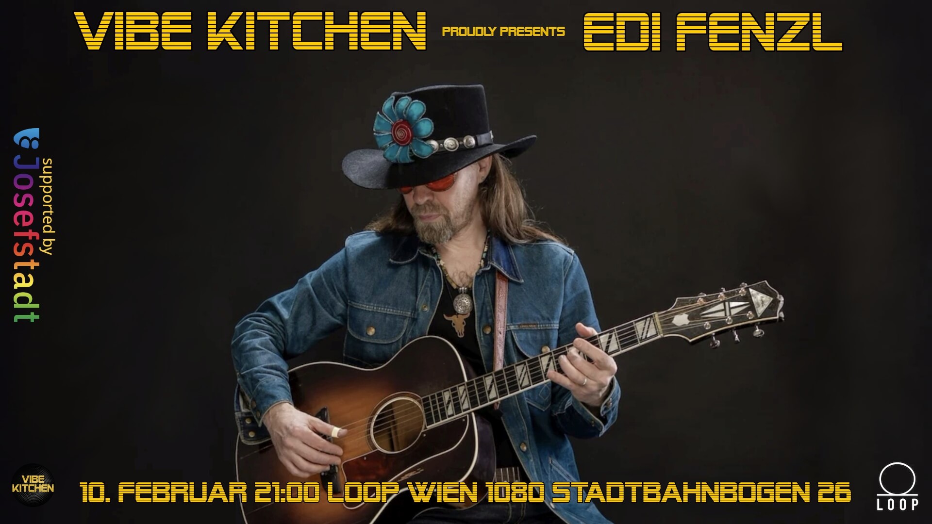 Loop Bar U-Bahn Bogen 26/27, Wien, Wien, AustriaSeit dem 14. Lebensjahr schlägt das Herz des aus Wien stammenden Gitarristen und Sängers Edi Fenzl für die Gitarre im Blues und Rock. Lobende CD-Kritiken, die Teilnahme an der European Blues Challenge (EBC) 2014 in Riga, regelmäßiges air-play auf dem Radiosender „Music City Roadhouse“ in Nashville Tennessee sowie musikalische Reisen nach Austin Texas und Chicago krönen sein musikalisches Schaffen. Mit akustischer Gitarre und Gesang führt Edi Fenzl durch ein breit gefächertes Programm mit sämtlichen Facetten der Blues- Rock und Countrymusik.